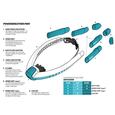 Make yourself familiar with the Powerbreather and read the manual carefully before your first use. Make sure the markings on the SPEED VENT face outwards and the highest upper edge of the SPEED VENTS faces forward towards your swimming direction.